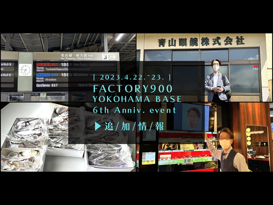 FACTORY900 YOKOHAMA BASE by 山下眼鏡店 【 6th anniv. 】 カテゴリ イベント・サービス情報 moe_megane Comment(0) こんばんは 氏原 です 先日お知らせしたFACTORY900 YOKOHAMA BASE 6周年記念イベントですが▼ 動きがありましたので、本日はそちらをご紹介しますね~ 詳細は続きを読むからどうぞ~ ◆ 先日の記事内で触れた統括がアレにアレ |