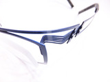 フロントは チタン で軽量化、マットな深い青が美しく印象的です テンプルは虎柄のような模様が描かれた半透明の生地で 可愛いです フロントからテンプルにかけては金属より軽量ですが 硬度のある セラミック を使用しています 眼鏡にセラミックを使うのはかなり珍しいそうですよ 形状から見ても分かるように セラミック部分は弾力性が あって掛け心地が良いです にゃいとさんにかけていただきました J.F.Reyとしてはおとなしめですが |
