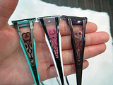 お色は ブルー ・ ブラウン ・ レッド ・ ブラック の4本です 今お写真で見えているテンプルの内側は優しいパステルカラーですが、裏側をみると・・・・ おぉぉ 目にも鮮やかなカラーです(>∀<) これならお洒落なご主人様・お嬢様でも楽しくフチ無しをかけられるのでは?? ワンポイントの柄も目を引いて素敵ですね~ そしてそして、フチ無しだけじゃないのです!!!! |
