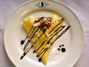 ヒロイン・御庭つみきらがアルバイトする喫茶店「はちぽち」の出張店として展開 プレミアムブルーベリーカルピスとソーダ、ブルーハワイシロップに黒ストローを添えた「御庭つみき」をはじめとするキャラクターイメージドリンク6種(各450円)と、「はちぽち」の足跡マークを皿にステンシルした「はちぽち日替わりケーキ」(600円)、チョコアイス、バナナ、ココアプリンなどで猫の顔をかたどった「はちぽちオリジナルクレープ |