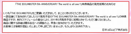 「アイマス」5周年記念ライブBD&DVDは11年3月へ発売延期 :にゅーあきばどっとこむ