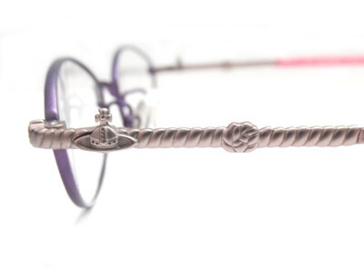佐和もめちゃモテになります さて本日は、 Vivienne Westwood より 【VW-5101】 のご紹介です 詳しくは下記をご覧下さいませ 【VW-5101】 ヴァイオレット × 濃いめピンク レンズ横幅:50mm、縦幅:27mmとなっております 鮮やかなヴァイオレットのメタルフレーム 小振りなサイズ感で、可愛らしい印象を与えてくれます サイド部分にも注目 さりげなくVivienneの小さなオーブ |