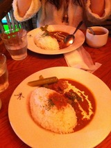 ・Д・) それでお菓子買ってレジャーシートひいてまったり 3時間くらいガールズトークしてました 色んなわんちゃんと戯れて楽しかったあ 犬好きな私たちはうはうはでした ずーっと話してて気付いたら暗くなってきたので 表参道に移動してオープンカフェでご飯 テキトーに歩いてていい感じのトコを 開拓しましたヾ(´ω`=´ω`)ノ 店長さんが面白くて優しくて 最後お菓子くれたりいいカフェでした そのとき食べたカレー |