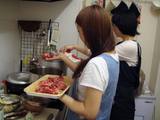 こちらです 甘口カレーです☆ チーズとハムのトッピングがかわいい一品になりました 残念ながら辛口カレーの写真を撮り逃してしまいましたが、辛口カレーも美味しそうでしたよ 辛口には揚げ茄子と、みじんぎりのゆで卵を乗っていましたよ~ アイディアは3階のお二人 流石はお料理上手です 食べたご主人様・お嬢様に感想を聞いてみると 「美味しいです!!」 「もう一度食べたいですー!!」 |