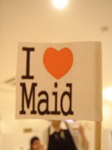 アホ毛とハタ坊 アキバには アホ毛の生えたメイド さんがいるが、 今日の メイステカフェ は 頭に旗を挿したメイドや ウェイター(男装)が存在した 今日はシェフが夏休みで、 メイドさん手作りのカレーぐらいしか メニューが無かったが、 なぜか和気あいあいの店内だった メニューはすべてメイドさんが考え 自分たちで作ったもの 全体を白いもので統一したらしいが なにやら怪しげなものも なんとなく学園祭のノリ |