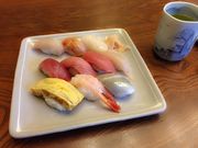 とくにね、すきだったのは 真ん中の列の左から2番目のやつ マグロだと思うのですが 身に脂がのっていて それがおいしいことおいしいこと シャリ3割増ぐらいで 食べないと物足りないないくらいの おいしさでした こちら、 『松乃寿司』さんで いただきました よかったら調べてみてください♪ いやー、 さっそく焼津市の いいところでちゃいましたね お寿司がおいしい! |