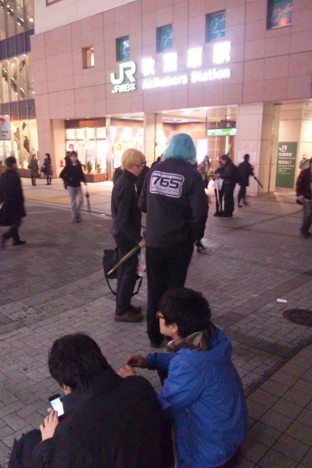 秋葉原メイドリフレ キューティーリラックス:2012-03-05 19:59 アキバで見かけた変わった外人 髪が青で前は半分くらい無くて、メガネかけてる |