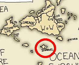 どのコミュニティがどういう位置づけで、どのくらいの存在感を持っているかといったイメージが分かる 「アルファルファモザイク」では、この地図が話題になっている2ちゃんねるのスレッドを紹介している。 地図上にはちゃんと「2CHANNEL」があるのが面白い(右側中央のちょっと上あたり)。 |