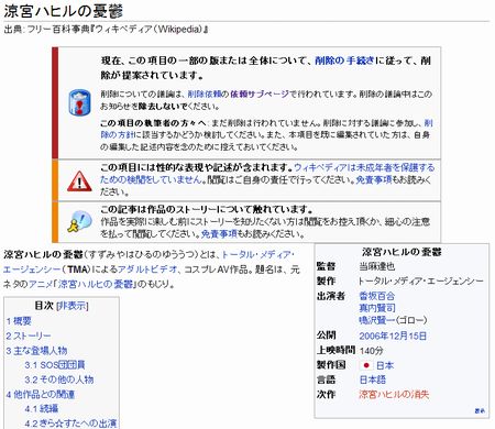 WikipediaにパロディAV「涼宮ハヒルの憂鬱」の項目がある :にゅーあきばどっとこむ