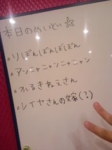 メイドカフェぴなふぉあ : *とらの爪跡日記* 14日はやばんぬ☆ コミケ帰りのほくほくした笑顔がたくさんでした(*´∇`*) 画像は今日のボード 書いた方はアンナさん(笑) 私の名前のヒントがないwww クエスチョンマークがつかないようにがんばります← とらち タグ : とら |