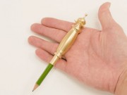 このブランドコンセプトに合わせ、エコとワイルド感という、相反するイメージを合体し新しい魅力を持った商品という切り口で試行錯誤を重ねて今回の新商品発売に至る 同商品は、真鍮を原料としたペンシルホルダーで、超合金ロボ的な重厚感といかついフォルムが特徴。 短くなった鉛筆を握りやすくし、最後まで使うのをサポートする。 ホルダーは、無垢の真鍮を旋盤技術によって削り出し。 |