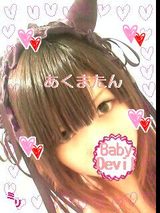メイドカフェ ぴなふぉあ:†Baby-Devil㍉のイタズラ日記† †Baby-Devil㍉のイタズラ日記† うにゅぁo(≧ω≦)o" 今日もあくまたんでちた//// 最近ピンクばっかだったので黒くなりたくて デビルになったでしゅ〃〃〃† 今日はリボンも黒くて o(≧ω≦)oれむしゃまコスなのでした〃笑 一緒だったこずみんがみりのコスをしてくれたので コス三角関係ができあがりましゅた/// o(´` |