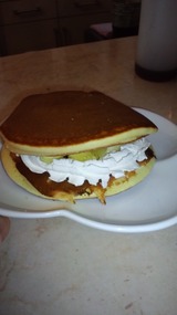 もっちもちのどら焼き生地に、ホイップとカスタードのダブルクリームにパイナップルの瑞々しさと酸味があいまって非常に美味しい逸品となりましたぁあっ(> ∀ これはオススメッ!! |