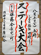 キャンディフルーツ オプティカル:8月5日ステーキ大会のお知らせ ステーキのお祭りですよ とは言っても当店のイベントでは無く 明日8月5日は私たちのお店がある地区内で 町内行事(その名もステーキ大会 いい響きでございます) が行われるため、お店の前は車両通行止めになります 写真はその告知のポスターです ん?佐藤会長宅前・・・どこ? |