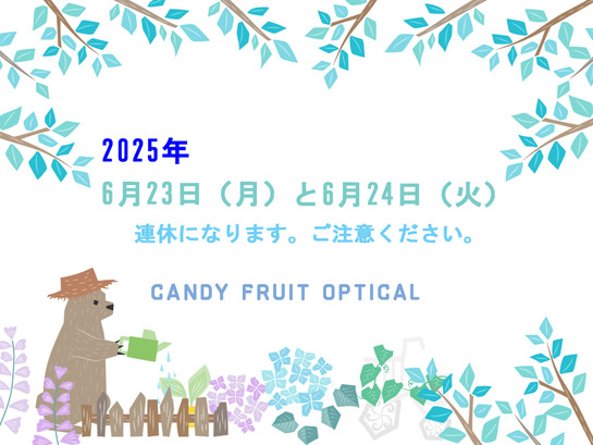 メイドが接客するメガネ屋 キャンディフルーツ オプティカル : 明日6/23(月)と明後日6/24(火)は定休日です!