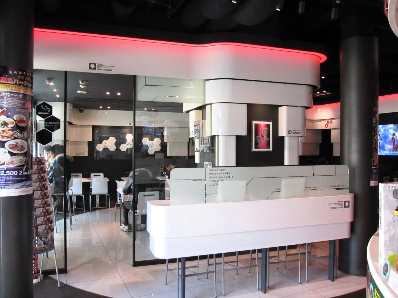 This store has a smoking section which is separated by a glass wall.