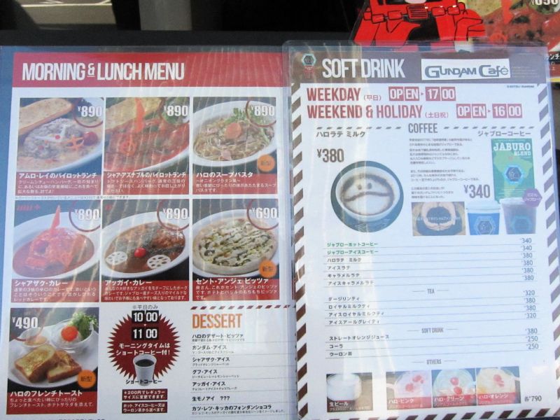 On weekdays, the Gundam Cafe opens at 10:00 and has a breakfast option
