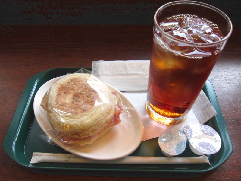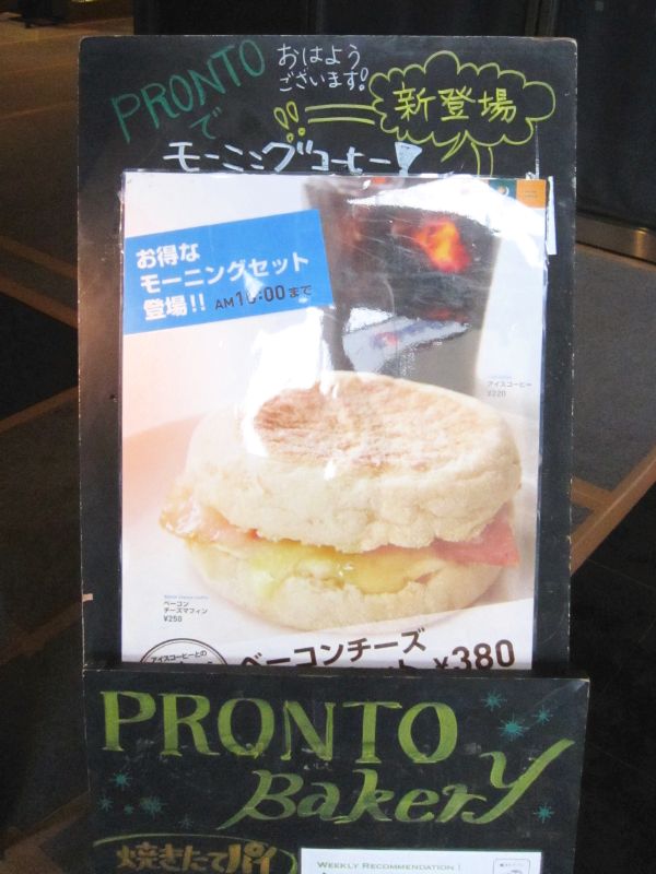 bacon and cheese muffin and drink for 380 yen.