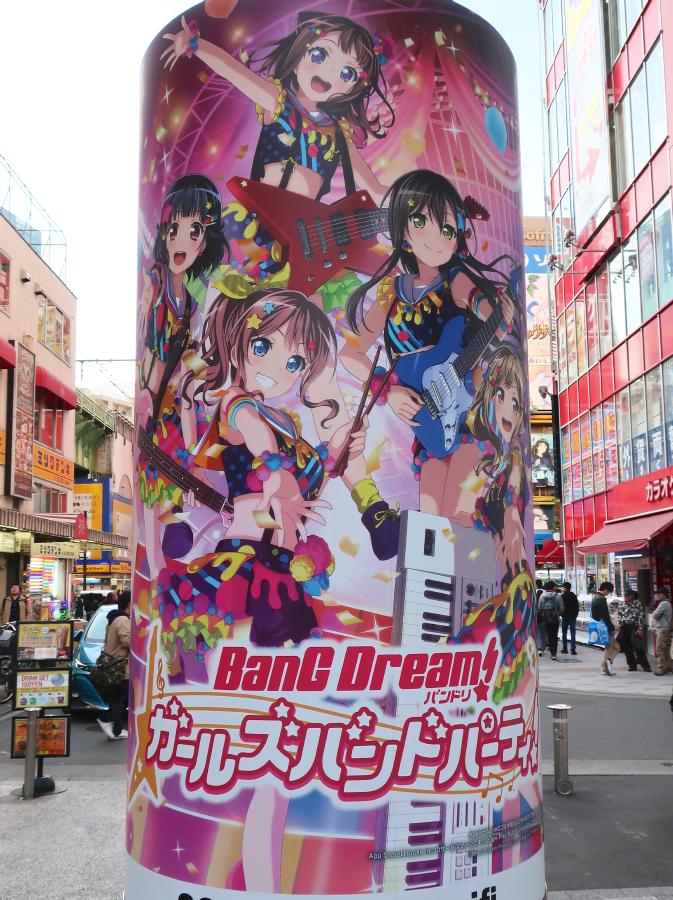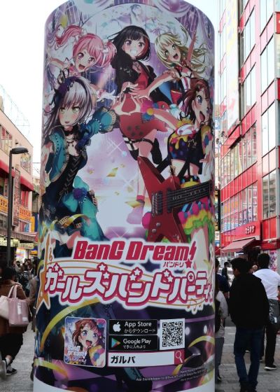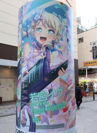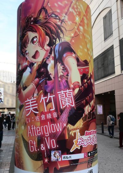 In December 2018, there were Bang Dream advertisements wrapped around the pillars on the north side of JR Akihabara Station.