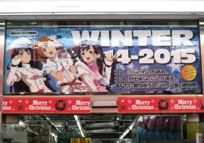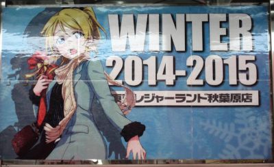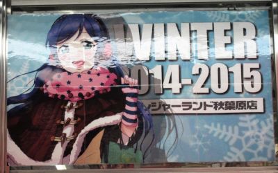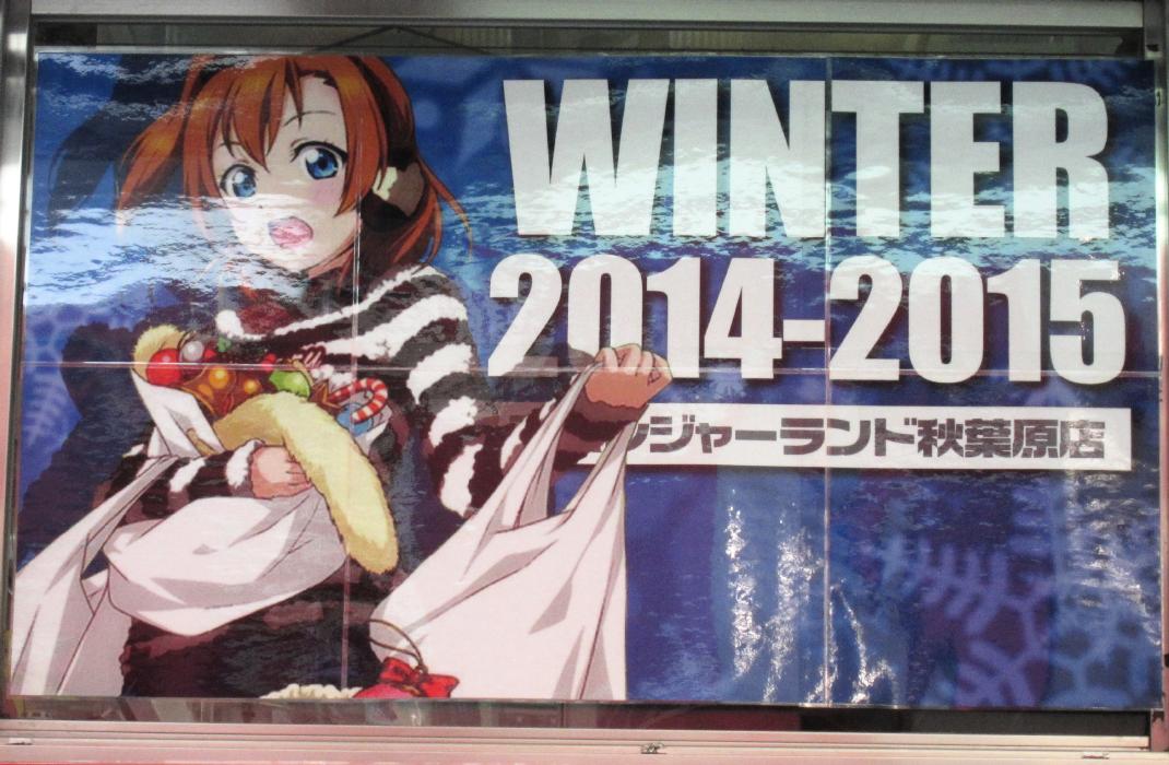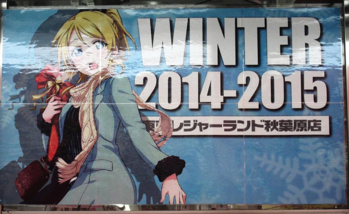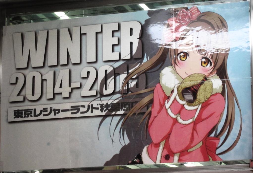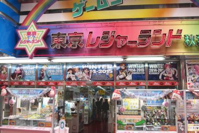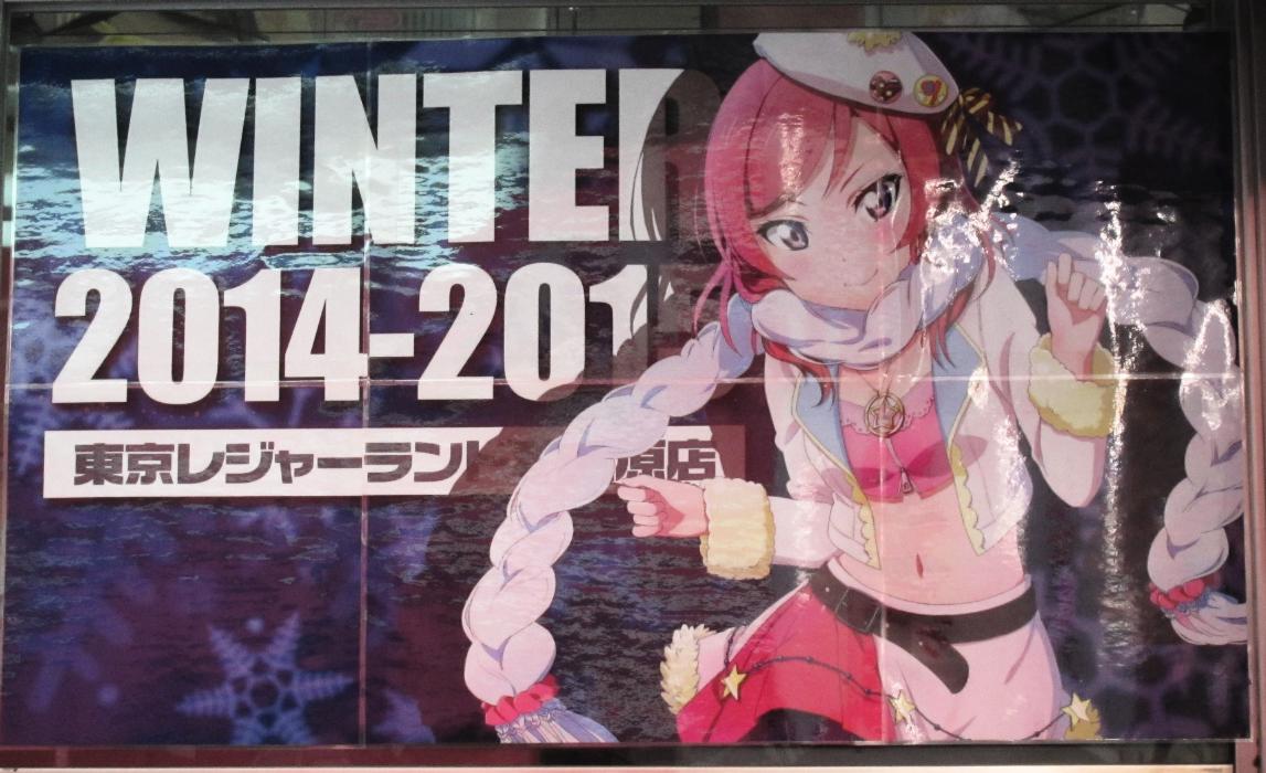 In December 2014, there were large pictures of the main characters from Love Live at the Tokyo Leisure Land game center.