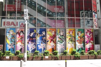 In May 2015, there were large posters of the Love Live characters in the windows of Atre Akihabara.