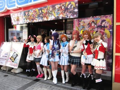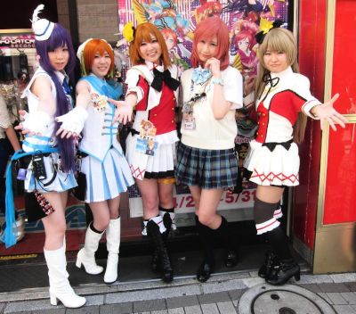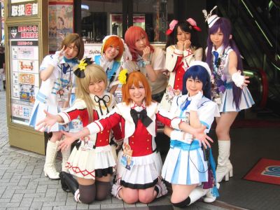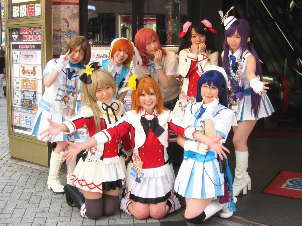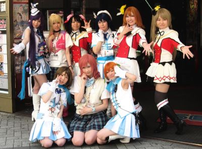 At 15:00, they gathered nine of the cosplayers (one for each girl),