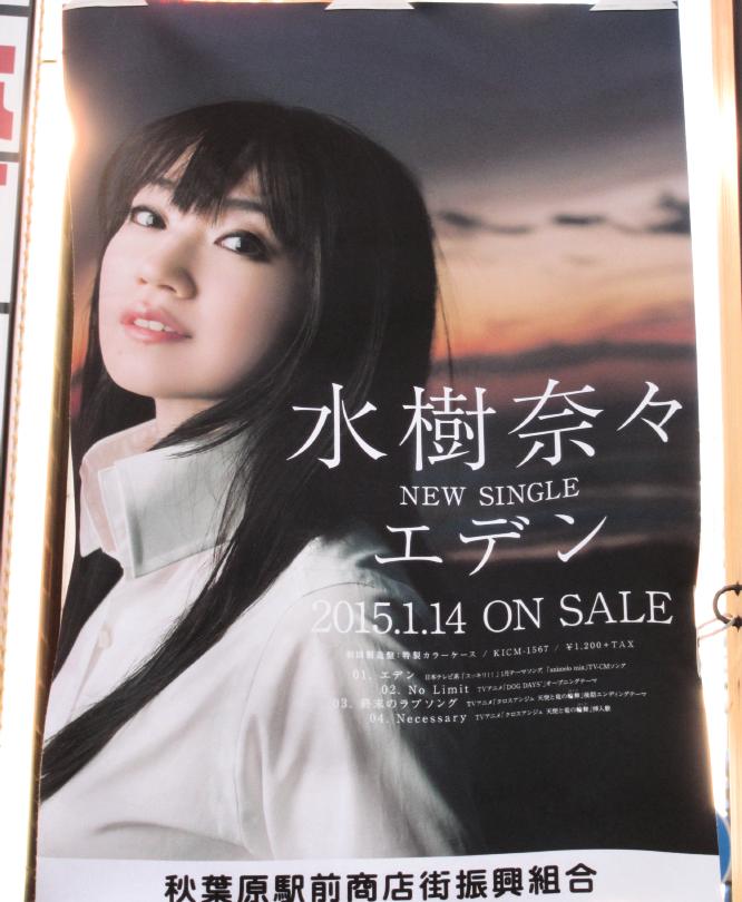 At the beginning of January there were tapestries on the south side of JR Akihabara station for the latest single and BD/DVD by Mizuki Nana.