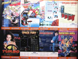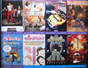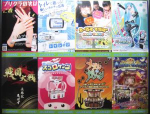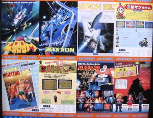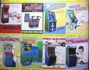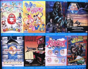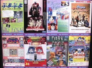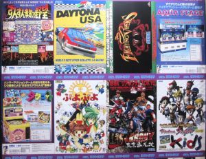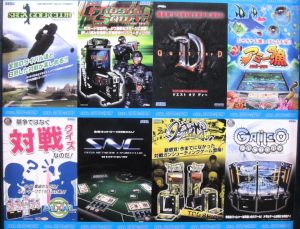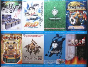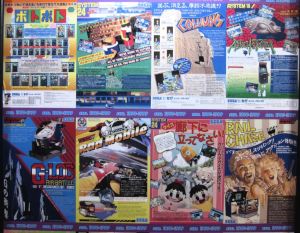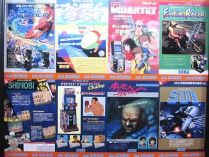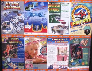 In the basement, there was a wall full of panels of old game pamplet covers.