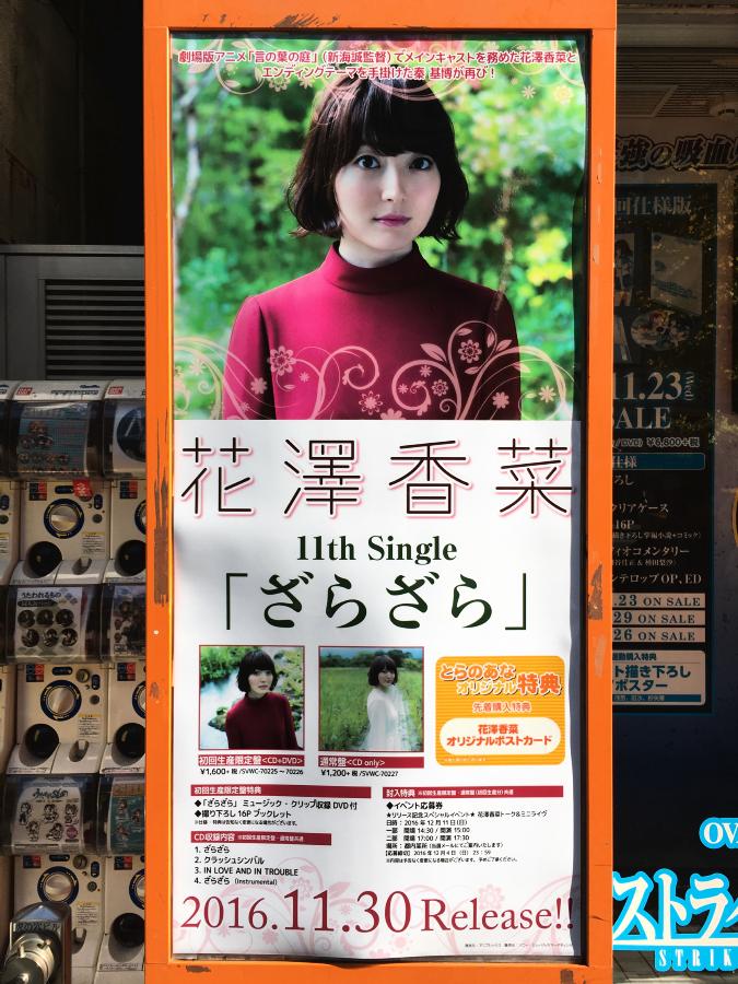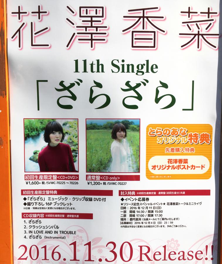 At the end of November 2016, there was a store front advertisement at Toranoana for the new single by Hanazawa Kana.