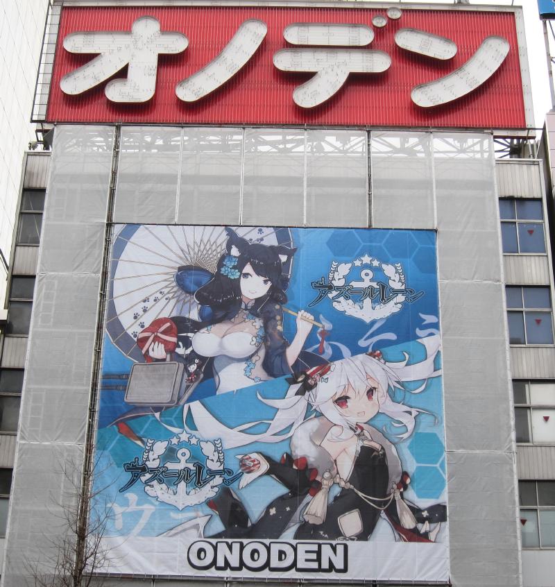 In February 2018, there was a large advertisment on the wall of Onoden for the game Azur Lane.