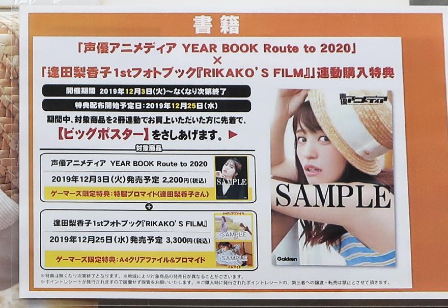 A photo of Rikako will be given away to those who by the book "Animedia Year Book Route to 2020" that goes on sale 12/3.