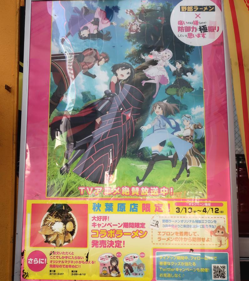 Between March 13 and April 12, 2020, there was a collaboration at Yarou Ramen with the TV anime Itaino ha Iyananode Bougyoryoku ni Kyokufuri sitai to omoimasu (BouFuri).