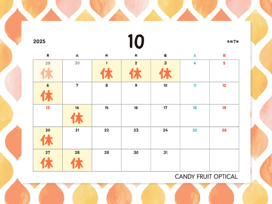 メイドが接客するメガネ屋 キャンディフルーツ オプティカル : 【 注意!】10月は秋休業がございます【 1日・2日・3日は3連休 】