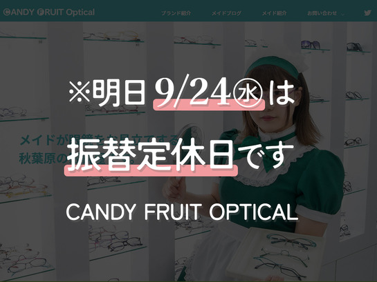 メイドが接客するメガネ屋 キャンディフルーツ オプティカル : 【 注意!! 】明日 9/24(水) は 振替定休日 です