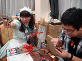 がひとつなくなってしまいます 東西自由通路の店でも、輸入食品を扱った店や、マクドナルド、100円ショップはそのまま営業を続けるようです 閉店の話ばかりでは寂しいので、新製品情報をひとつ 秋葉原で各種お土産品を販売している 「萌土産」 がプロデュースした商品、『萌萌千社貼札』がドンキホーテ5Fにありました タッチパネルで名前を入力して、オリジナルの千社札シールが簡単に作れます 「日本メイド協会」 のメイドさんもキャンペーン |