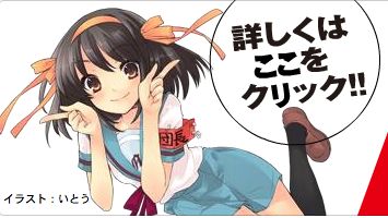 「 涼宮ハルヒの直列 」と「 涼宮ハルヒの並列 」の「涼宮ハルヒの連動キャンペーン」の紹介もあり、涼宮ハルヒのイラストが描かれている そのイラストのクレジットがなぜか一時期「イラスト・いとう」になっていたようだ。 「漫画読もうぜ」でそのことが紹介されており、そのときの様子が画像で見られる。 |