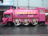 SEVEN'S Blog:ピンク色の機関車現る ピンク色の機関車現る 今日はなぜか秋葉原駅の 電気街口に、ピンク色をした、 機関車が止まっていました 後ろ側のつくりも、 結構しっかりしています 今度の選挙の広報カーのようです 結構手が込んでますね ナンバーはなぜか富山 (有)SL自動車 あたりが近いんですが、 ナンバーの件は分かりません しばらく様子を見ていると キャンペーンレディの方が 広報用のティッシュ |