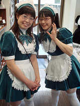 GW中は観光客を中心に撮影だけではなく、女性限定でコスプレ衣装に着替えることができ、他店舗とくらべて衣装の種類が豊富かつコスプレ体験が500円という安さで好評だった 今回お邪魔したときには、キャンフルデイとして、珍しいメイド服姿。 現在キャンディーフルーツオプティカルとの協賛ということでメガネメイドでした。 |