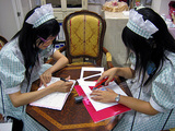 キャンディフルーツ オプティカル:ちゃくちゃくと 風が強いですね 心地は良いけれど家の洗濯物が飛ばされていないか かなり心配な小山田でございます 明日はいよいよお茶会 明日に向けて、皐月さんと野苺さん、真剣に作業中です そんな撮影風景をパチリ これは豪華景品 (まだ秘密です) の製作風景・・・ いったいお二人は何を作っているのでしょうか では御主人様方、明日お会いしましょう~ by野苺みるく あ! |