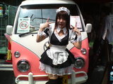 カフェらしくでガレージに止まっていた車がお店になっていました しかもメイドさんの服が、どっかで見たことあるなぁーって思ってたらは、うちの番組と同じ キャンフル のニコレッタの色違いでした。 紺とピンク ちょっと親近感が沸きました 沸いたついでに、そよカフェ号に乗ってみました 運転メイド 免許は無いけど運転メイド この模様は、今週の番組で! |