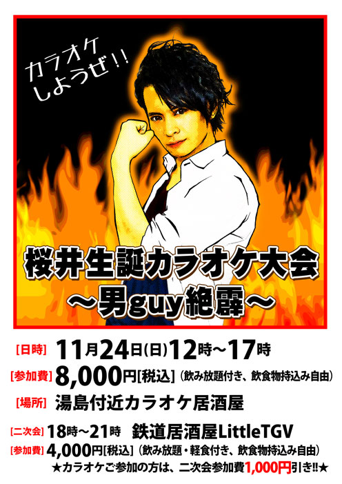 【11/14(木)18時~受付開始】『桜井生誕カラオケ大会~男guy絶霹~』 | 鉄道居酒屋LittleTGV 乗務日誌