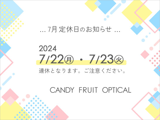メイドが接客するメガネ屋 キャンディフルーツ オプティカル : 明日 7/22(月)・明後日 7/23(火)は定休日です