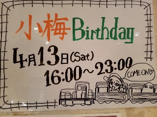 さてさてLittle TGVではフレッシャーズキャンペーンを開催しています 初乗車の方2名様以上のグループで飲み放題ができますよ 詳しくは乗務員にお尋ねください 日本酒は鏡山が入荷しまーす そして来週でございます。 小梅さんバースデーイベント 来週の今頃はどうなっているか楽しみであります それでは本日もよろしくお願いしますm(__)m つがる Tweet |
