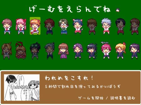 キャラクターをクリックすると、各ゲームをプレイできる ・ メイドイン咲-咲シリーズまとめ- ・ あかり小屋「メイドイン咲 ver9.9」 |
