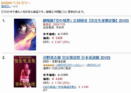 DVD「劇場版 空の境界 第六章忘却録音」がアマゾン1位 :にゅーあきばどっとこむ