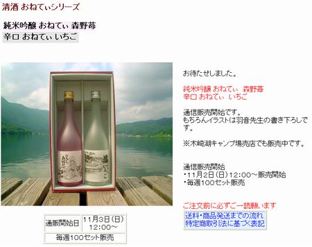 先行販売で購入できなかった人はこの機会にどうぞ ・ 清酒おねてぃシリーズ ■ 関連記事 ・ 5分で売り切れた「清酒おねてぃ」新商品を写真で紹介 ・ 「清酒おねてぃ」の新商品が受付開始後5分で完売 |