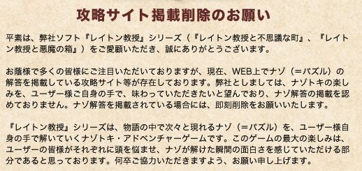 「レイトン教授」のネタバレ削除依頼に反感→文章変更 :にゅーあきばどっとこむ