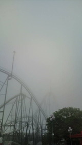 ってジタバタしてました 何個か乗り物に乗って、その後私がいっっっっちばあああん楽しみにしていたお化け屋敷「戦慄迷宮」に行ってきました 雰囲気や内装が、とてもとても素敵で興奮しました!(*´Д`*) そして、お化け屋敷を出るとなんと雨が降っており霧が物凄くてFUJIYAMAのレールが消えかかっていました…!! どこかに連れて行かれそう…(*´艸`) |
