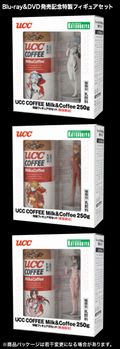 ローソン、エヴァストア、アニメイト、コトブキヤで販売となる。 詳細は以下のサイトで ・ EVANGELION.CO.JP「ヱヴァンゲリヲン新劇場版:破 Blu-ray&DVD 発売記念 UCC COFFEE Milk&Coffee 250g 特製フィギュア付セット2010年4月27日発売! |