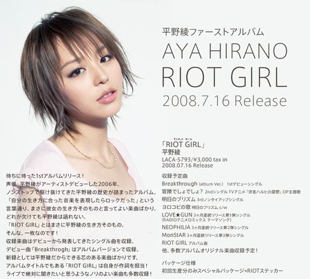 平野綾ファーストアルバム「RIOT GIRL」詳細情報が発表 :にゅーあきばどっとこむ